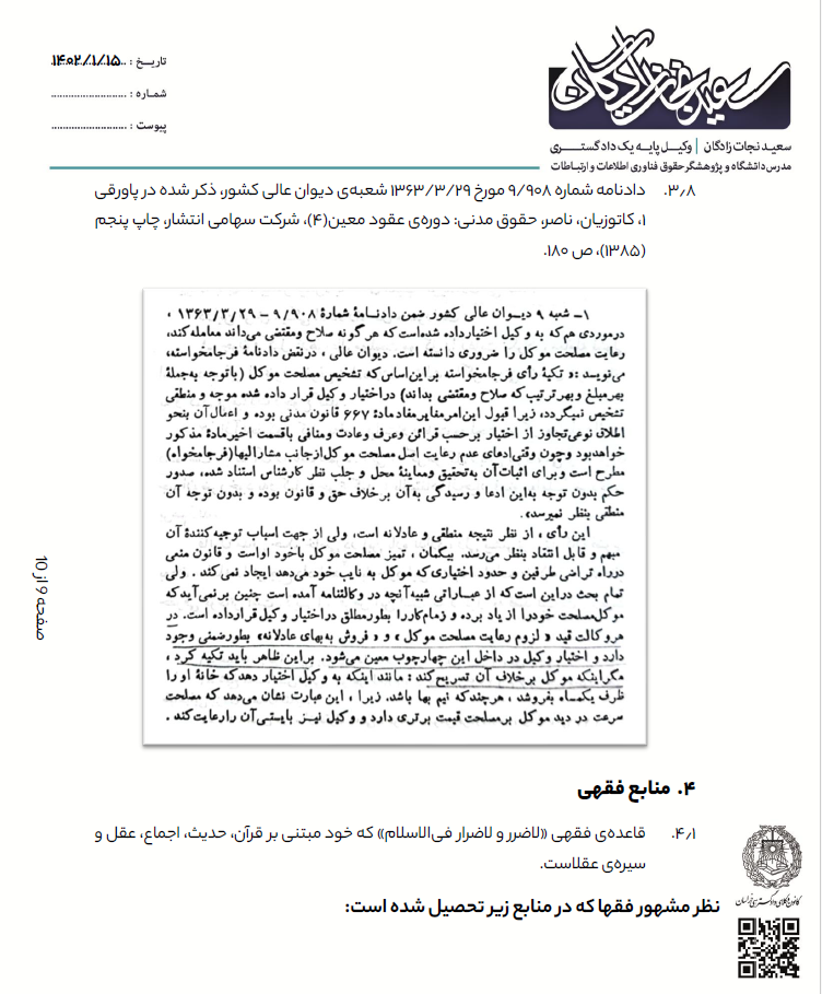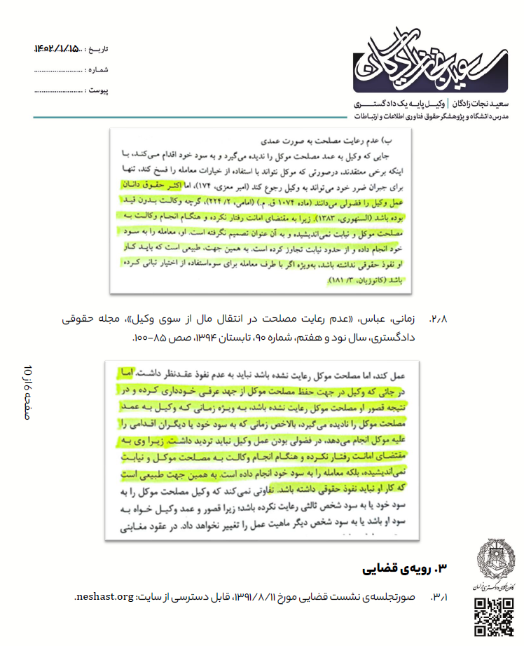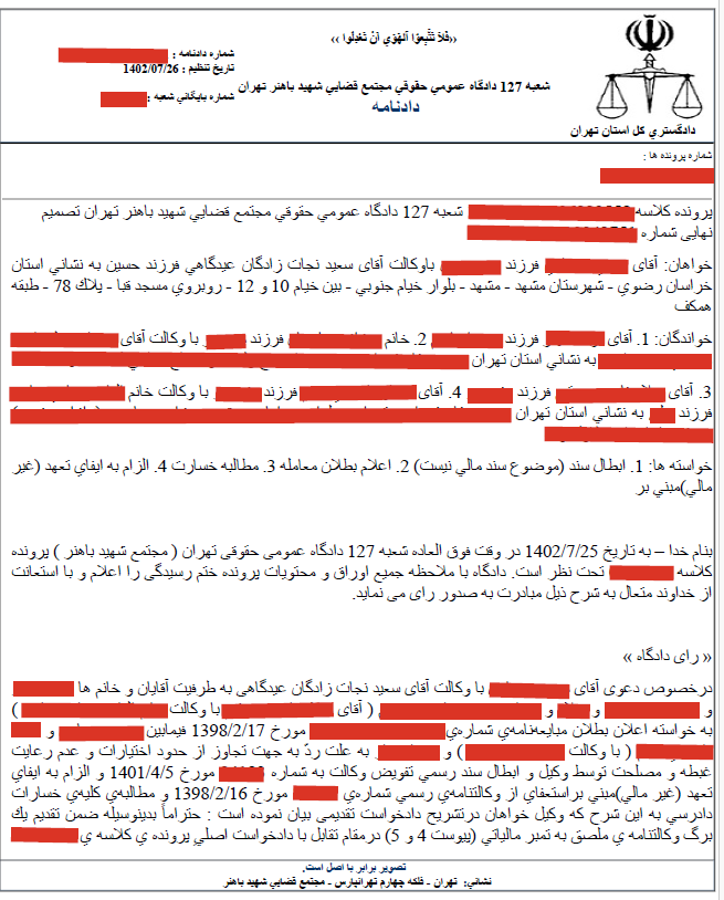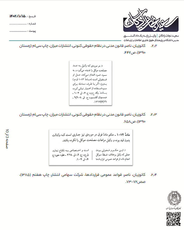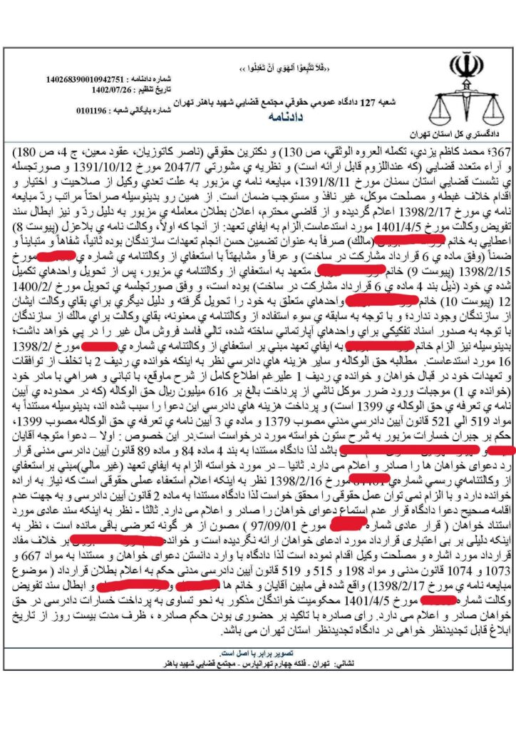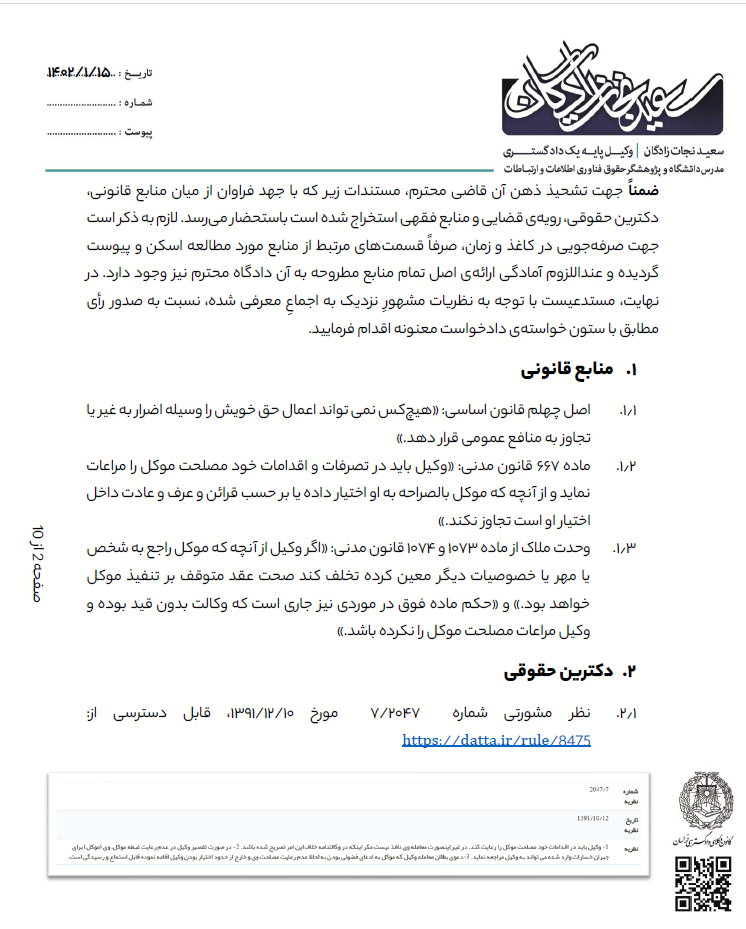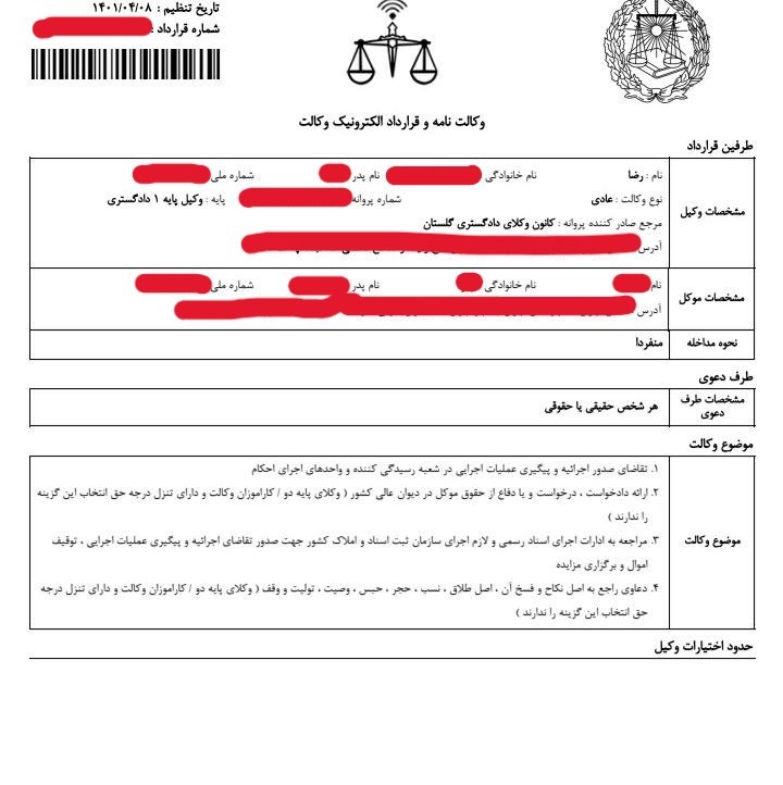 توجه:جهت رعایت حریم خصوصی و اسرار موکل، تمام نامها مستعار هستند.