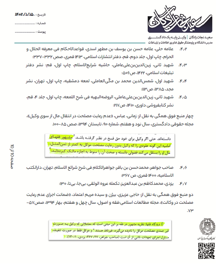 4- اعلام وکالت وکیل سعید نجات زادگان